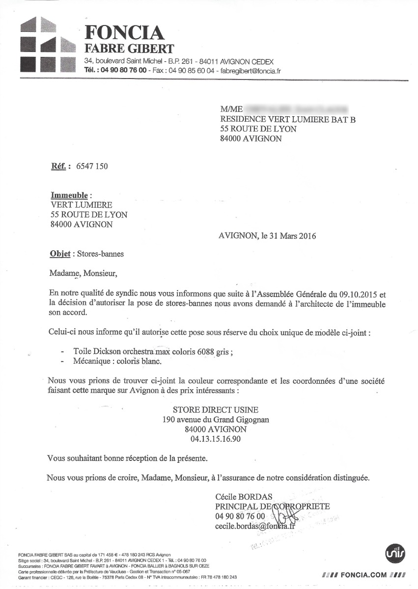 Il vous suffit de nous retourner la lettre de Foncia qui vous oriente vers nous. Vos nom et adresse devront être renseignées en en-tête de ce courrier dont vous trouverez un exemple ci-dessous :