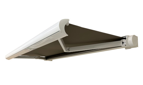 Les stores bannes coffre intégral forment le store double pente XL, offrant ainsi un contrôle indépendant pour chaque côté de ce store de qualité professionnelle.