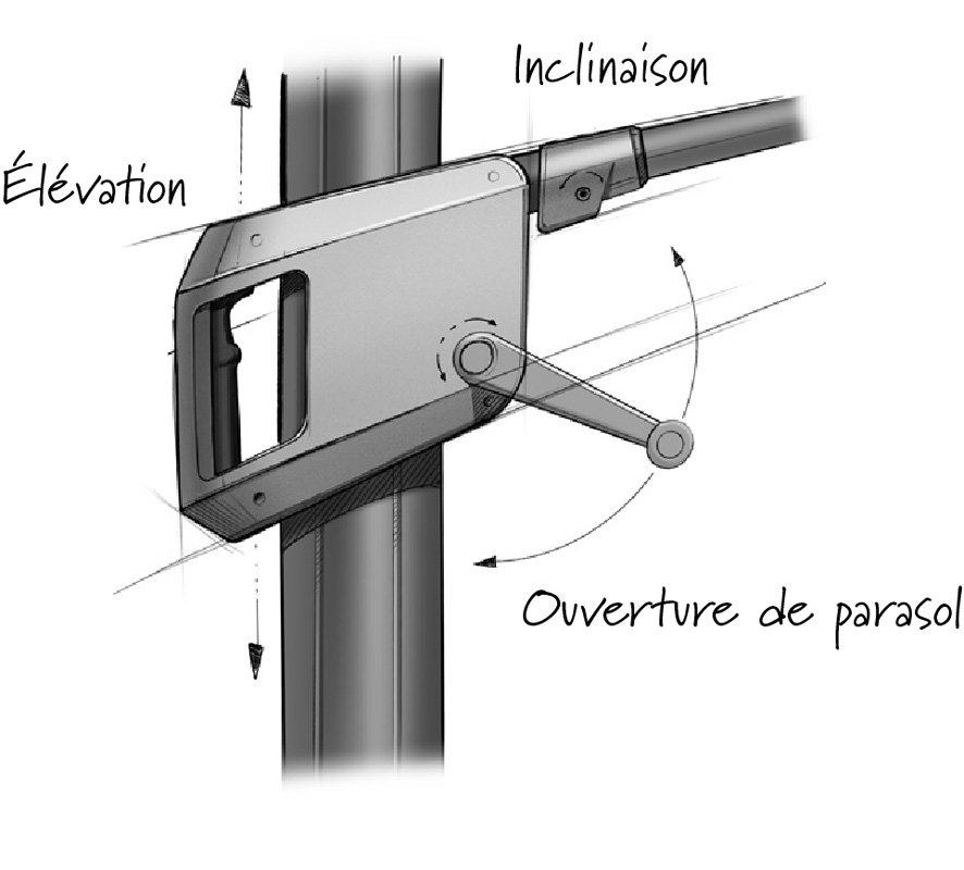 Ouverture/fermeture full position, rotatif 360° + toile orientable