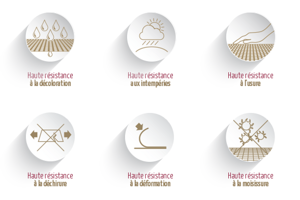 Grâce à leur teint masse, les tissus sont protégés de la décoloration, malgré les morsures du soleil, pour garder leur éclat au fil du temps.