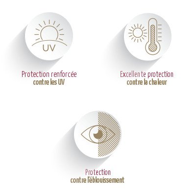 Les toiles Soltis 96®, d'une densité de 400g/m2, sont le fruit d'un assemblage de matériaux composites à haute performance. En résulte des toiles techniques hautement résistantes, qui bloquent et rejettent la chaleur, faisant d'elles un véritable bouclier thermique et limitant ainsi les dépenses énergétiques liées à l'utilisation de la climatisation. Tout en laissant passer la lumière, les toiles Soltis 96, grâce à leur micro-perforation régulière et texturée à 6% d'ouverture, vous protègeront des rayons du soleil sans obscurcir votre pièce.