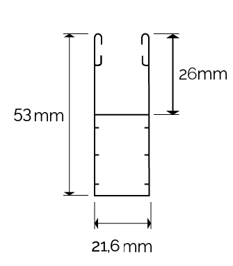 53 x 21.6 mm sans ailes avec joints à brosse sertis pour l'isolation.