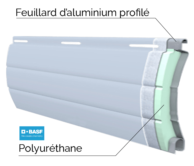 Tablier ADP 44,35 mm, coulisses et lame finale en alu, verrous anti-levage