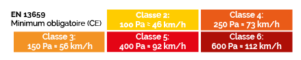 Classification selon la norme EN 13659: